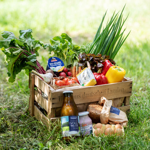 Frisches Bio-Obst & -Gemüse aus der Region, dazu 3 knusprige Brötchen und aromatischer Bio-Käse.
