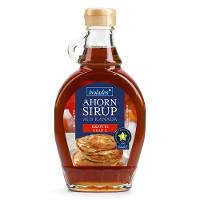 Ahornsirup ist der eingekochte Saft des Zuckerahorns. Geerntet wird nur wenige Wochen im Frühjahr. Dazu werden die Stämme angebohrt, ohne den Baum zu schädigen, und der Saft abgezapft. Die unterschiedlichen Grade bestimmen die Geschmacksqualität und sind abhängig vom Erntezeitpunkt. Zu Anfang ist der Saft heller mit einem fein-milden Aroma (Grad A), zum Ende wird er von Natur aus dunkler und kräftiger im Geschmack. (Aus Kanada. Kräftig im Geschmack.)