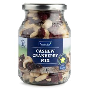 CASHEWKERNE* (55%), Cranberries* (45%) gesüßt, geölt (Cranberries*, Rohrohrzucker*, Sonnenblumenöl*)| Energie | Fett | gesättigte Fettsäuren | Kohlenhydrate | Zucker | Eiweiss | Salz |
