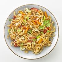 33% Bandnudeln* gegart (Wasser, HARTWEIZENGRIEß*), Weißkohl*, Karotten*, Gemüsepaprika*, Mungobohnenkeime*, Zwiebeln*, Porree*, Sojasauce* (Wasser, SOJABOHNEN*, WEIZEN*, Meersalz), Sonnenblumenöl*, Meersalz, Maisstärke*, Tomatenmark*, Knoblauch*, Gewürze* (Koriander*, Paprika*, Kreuzkümmel*, Pfeffer*, Cayennepfeffer*).| Energie | Fett | gesättigte Fettsäuren | Kohlenhydrate | Zucker | Ballaststoffe | Eiweiss | Salz |