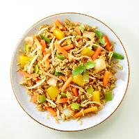 45 % Reis* gegart (Wasser, Reis*, Speisesalz), Karotten*, Mungobohnenkeime*, Lauch*, gelbe Paprika*, Weißkohl*, Wasser, Zwiebeln*, Sojasauce* (Wasser, SOJABOHNEN*, WEIZEN*, Meersalz), Maisstärke*, Zitronensaft*, Knoblauch*, Gewürze* (Koriander*, Ingwer*, Paprika*, Kurkuma*, Pfeffer*), färbendes Lebensmittel Kakaopulver*, Meersalz, Reismehl*, Pastinakenpulver*, Olivenöl*.| Energie | Fett | gesättigte Fettsäuren | Kohlenhydrate | Zucker | Ballaststoffe | Eiweiss | Salz |
