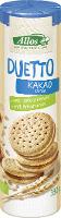 Zwei knusprige Kekse mit Amaranth, lecker gefüllt mit einer schokoladigen Cremefüllung:Das sind die unwiderstehlich leckeren Doppelkekse von Allos. Doppelter Keks-Genuss für Zwischendurch!