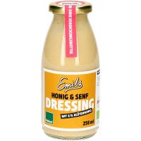Rapsöl kaltgepresst*, Apfelsaft* aus Apfelsaftkonzentrat*, 11 % SENF (Wasser, SENFSAAT*, Apfelessig*, Steinsalz), Apfelessig*, natives Olivenöl extra*, 6 % Honig*, Meersalz, schwarzer Pfeffer*.| Energie | Fett | gesättigte Fettsäuren | Kohlenhydrate | Zucker | Eiweiss | Salz |