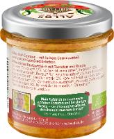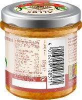 Tomaten* (37%), Sonnenblumenkerne*, Karotten* (10%), Sonnenblumenöl*, Rucola* (9%), Kirschtomaten* (7%), Kartoffelstärke*, Agavendicksaft*, Tomatenmark* (2%), Rote Bete-Saft aus Rote Bete-Saftkonzentrat* (2%), Zitronensaftkonzentrat*, Meersalz, Zwiebelpulver*, Verdickungsmittel: Johannisbrotkernmehl*, Chilipulver*.| Energie | Fett | gesättigte Fettsäuren | Kohlenhydrate | Zucker | Ballaststoffe | Eiweiss | Salz |