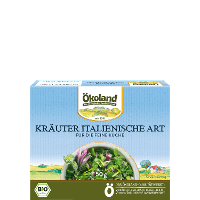 Die Ökoland Italienischen Kräuter sind eine feine Bio-Kräutermischung aus mediterranen Gewürzen wie Petersilie, Basilikum, Bärlauch, Thymian, Oregano und roten Zwiebeln. Sie dürfen bei der Zubereitung vieler italienischer Speisen nicht fehlen und bringen einen Hauch von südländischer Lebensfreude in die Gerichte. Sie werden sorgsam angebaut und erntefrisch tiefgefroren. Streufähig in der praktischen wiederverschließbaren Schachtel haben sie als wertvolle Zutat einen festen Platz in jeder Küche.
