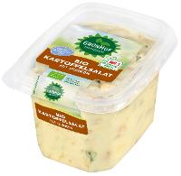 Kartoffeln* 65 %, Rapsöl*, Wasser, Gurken* 6 %, Rübenzucker*, Branntweinessig*,Zwiebeln*, Sonnenblumenprotein*, Kräuter*, Gewürze*, Meersalz, SENFSAAT*,Stärke*, Verdickungsmittel: Guarkernmehl*, Xanthan.| Energie | Fett | gesättigte Fettsäuren | Kohlenhydrate | Zucker | Eiweiss | Salz |