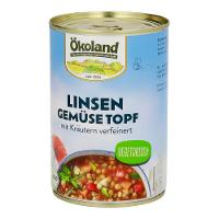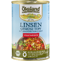 Trinkwasser, 24% Gemüse* - in veränderlichen Gewichtsanteilen (Tomaten*, Lauch*, Karotten*, Zwiebeln*, SELLERIE*), 19% Linsen*, Tomatenmark*, Sonnenblumenöl*, Steinsalz, WEIZENMEHL*, Rohrohrzucker*, Maisstärke*, Verdickungsmittel: Guarkernmehl*; Meersalz, Gewürze* (Macis*, Curcuma*, Pfeffer*), Kräuter* (Liebstöckel*, Petersilie*, Rosmarin*).| Energie | Fett | gesättigte Fettsäuren | Kohlenhydrate | Zucker | Ballaststoffe | Eiweiss | Salz |