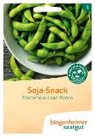 Edamame ist eine besondere Sojasorte, die frisch verzehrt wird. Sie wird wie Zuckerschoten geerntet und mitsamt Hülse kurz gegart. Die Sorte "Green Shell" bildet besonders große Körner, ist