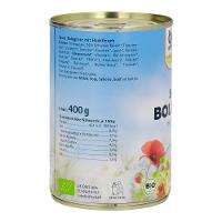 Trinkwasser, 24% Schweinefleisch*, Tomatenmark*, Zwiebeln*, Tomaten*, Karotten*, Lauch*, Sonnenblumenöl*, WEIZENMEHL*, Meersalz*, Rohrohrzucker*, Gewürze* (Paprika*, Pfeffer*), Knoblauch*, Kräuter* (Oregano*, Basilikum*, Bohnenkraut*, Thymian*, Rosmarin*, Fenchel*)| Energie | Fett | gesättigte Fettsäuren | Kohlenhydrate | Zucker | Ballaststoffe | Eiweiss | Salz |