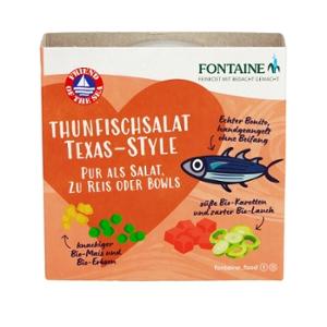 THUNFISCH (Katsuwonus pelamis) 25%,Gemüse* (50%) - Mais*, Karotten*, Lauch*,Erbsen* in veränderlichen Gewichtsanteilen- Wasser, Branntweinessig*, Vollrohrzucker*,Sonnenblumenöl*, Meersalz, Pfeffer*,Verdickungsmittel Guarkernmehl* undJohannisbrotkernmehl*, Schnittlauch*,Petersilie*.| Energie | Fett | gesättigte Fettsäuren | Kohlenhydrate | Zucker | Eiweiss | Salz |